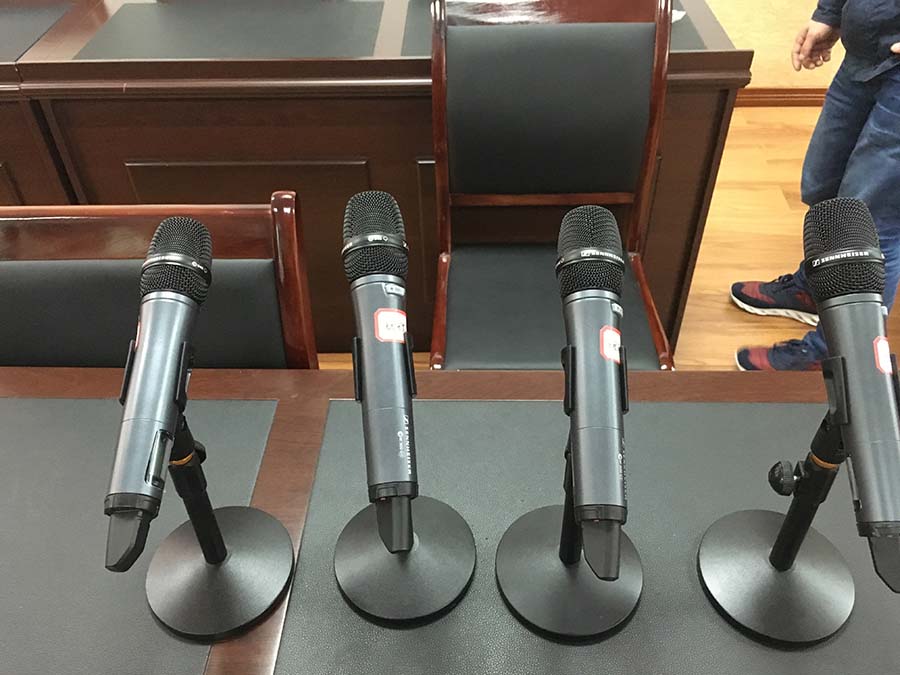 315會議室是萬盛經管委會非常重要的會議室,此會議室每天都有重要會議,所以此會議室音響擴聲系統選用美國BOSE(博士)音箱4只,會議系統選用德國BOSCH(博世)手拉手會議系統24只,無線話筒選用德國森海塞爾話筒8只,功放選用美國皇冠功放2臺,調音臺選用英國聲藝,其他周邊再配上賽賓反饋抑制器、DBX均衡器。該會議室所有音頻擴聲設備均選用的全球頂級品牌,音質良好,話筒拾音距離40-80cm。該會議室設備搭配合理,聲場布局均衡,使整個會議室音響效果清晰,聲音還原度極好。無雜音,無嘯叫聲,系統運行穩定。以下為施工完成后的照片: