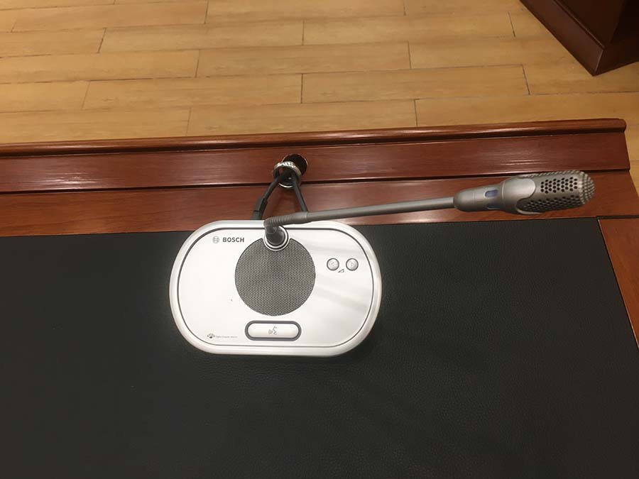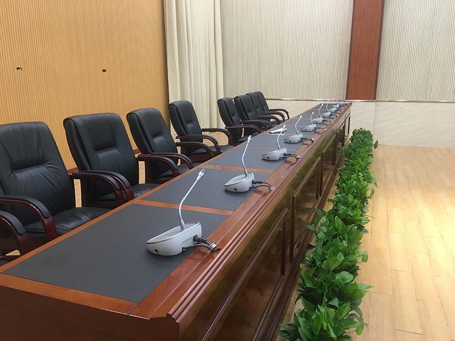 萬盛管委會會議室音響系統選用德國博世(BOSCH)手拉手話筒,美國博士(bose)音響、功放、處理器,雅馬哈調音臺,鐵三角無線話筒,長虹激光投影儀。整套系統運行穩定,會議擴聲性能良好,音響聲音清晰,話筒使用無嘯叫,音箱無雜音,,相關使用方對我公司高度贊譽,對整套設備非常滿意。