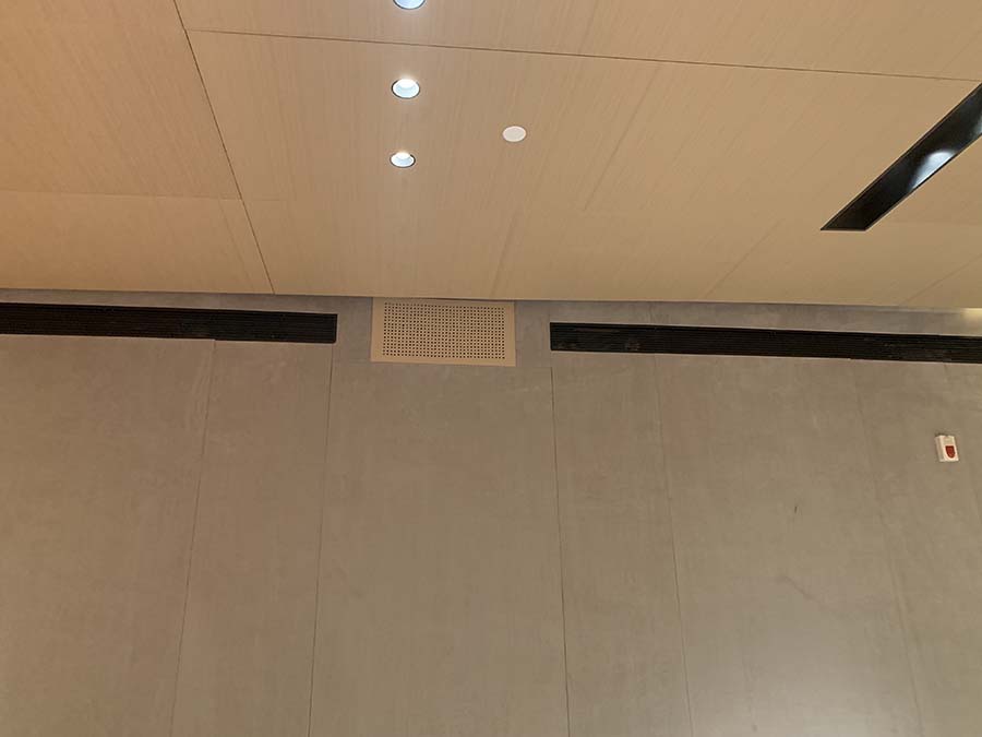 重慶中瑞產業園會議室音響擴聲系統及視頻顯示系統由我公司負責設計、施工及維護。該會議室選用美國bose音響Bose F1 Model 812 可調指向性陣列揚聲器作為前置主擴聲音箱,BoseRoomMatchRMU208 多用途揚聲器作為后場補聲音箱。功放選用BosePowerMatchPM8500可配置專業功率放大器,處理選用Bose?ControlSpace?ESP-880處理器,傳聲器選用西班牙televic手拉手會議系統及AKG無線話筒,調音臺選用英國Soundcraft聲藝Signature 16調音臺。顯示屏選用P2.5室內全彩顯示屏。我公司為精信中心會議室擴聲系統提供音樂會品質的聲音和高水平的可擴展性和可配置性。音箱全采用隱藏式安裝。以下是現場施工照片。
