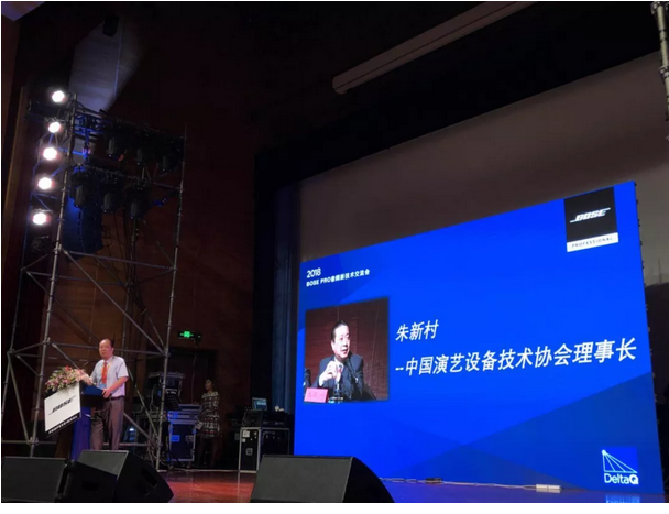 中國演藝設備技術協會朱新村理事長在致辭中表示BosePro作為世界頂尖的音響制造商,每年都有大量的創新技術面世,Bose Pro連續三年參展并舉辦新技術交流會,為國內外專家學者和廠家提供了交流的平臺,促進了音頻新技的推廣和應用,感謝Bose Pro對PALM展的支持并祝交流會圓滿成功。