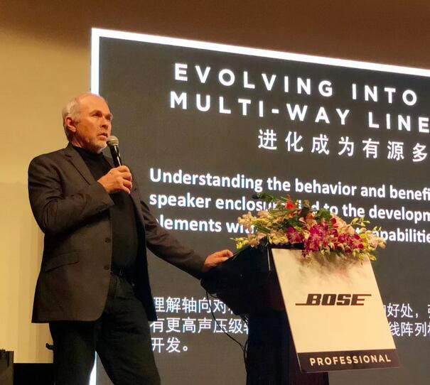 作為AES(音頻工程)協會主席/美國聲學學會成員/Bose Pro全球演出租賃市場總監David Scheirman 也加入了中國專家們的討論;并帶了《線陣列技術及其在全球的應用》主題演講。