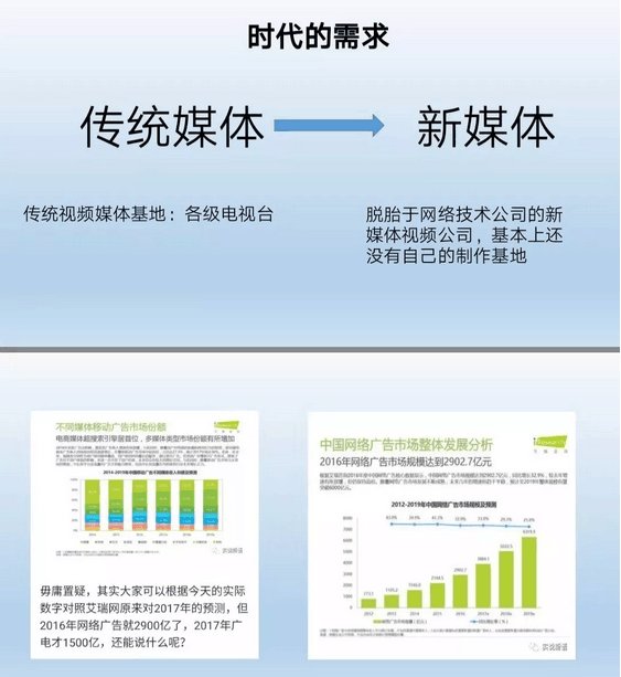 近年來,隨著互聯網的快速崛起,傳統媒體的電視內容在快速朝新媒體節目內容轉移,在地鐵上,候機廳,高鐵站等都是低頭一族在觀看手機內容,新媒體節目內容尤其受注重互動和體驗的年輕一代人的喜愛。據統計2017年,新媒體內容市場的廣告份額已經遠遠超過了傳統媒體。