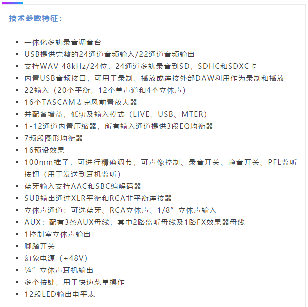 發布日期:2018-12-20 瀏覽量:3400次TASCAM一直提供業界領先的錄音解決方案,而Model 24正在傳承它的經典傳統,并注入最新的音頻技術;提供全新的,美妙的多聲道現場錄音控TASCAM一直提供業界領先的錄音解決方案,而Model 24正在傳承它的經典傳統,并注入最新的音頻技術;提供全新的,美妙的多聲道現場錄音控制臺。制TASCAM一直提供業界領先的錄音解決方案,而Model 24正在傳承它的經典傳統,并注入最新的音頻技術;提供全新的,美妙的多聲道現場錄音控制臺。TASCAM一直提供業界領先的錄音解決方案,而Model 24正在傳承它的經典傳統,并注入最新的音頻技術;提供全新的,美妙的多聲道現場錄音控制臺。