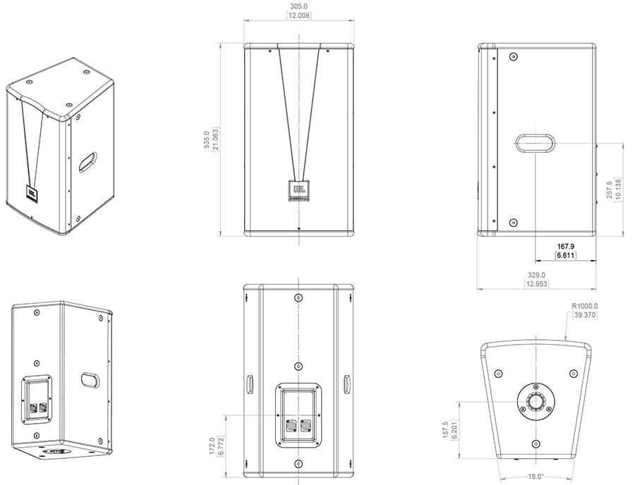 10”定制低音單元,提供高效的電聲轉換率JBL 2408-2壓縮高音單元,降低系統失真率箱體采用15 mm夾板,表面覆以DuraFlexTft