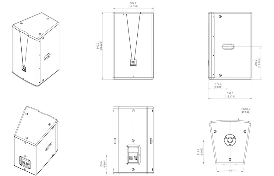 90° × 90°均衡覆蓋范圍12”定制低音單元,提供高效的電聲轉換率JBL 2408-2壓縮高音單元,降低系統失真率箱體采用15 mm夾板,表面覆以DuraFlexTft